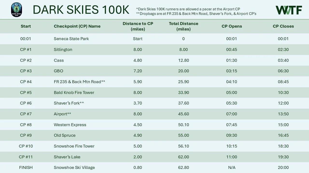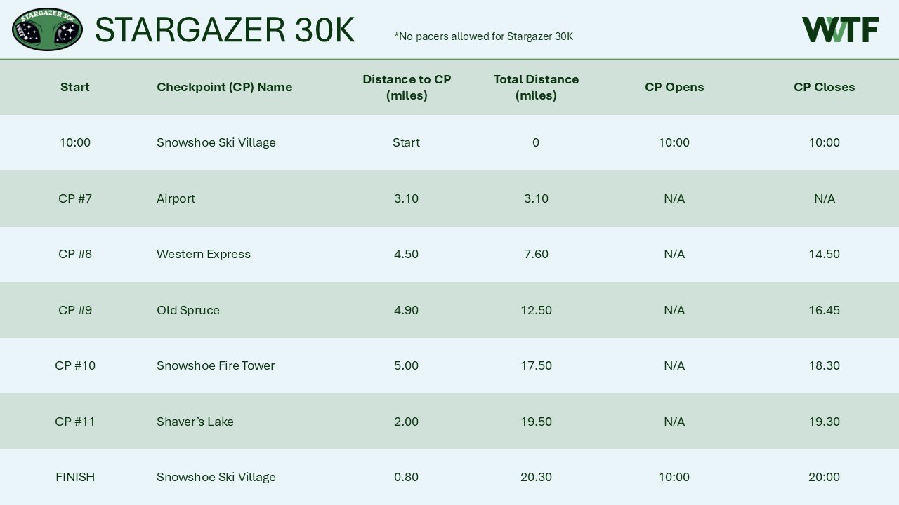 Course Maps + Elevation Profiles CHECKPOINTS View fullsize DARK SKIES 100K View fullsize View fullsize Caltopo Course Map Strava Course Map Download GPX File FULL MOON 50K View fullsize View fullsize Caltopo Course Map Strava Course Map Download GPX File STARGAZER 30K View fullsize View fullsize Caltopo Course Map Strava Course Map Download GPX File TWILIGHT 5K View fullsize Caltopo Course Map Strava Course Map Download GPX File